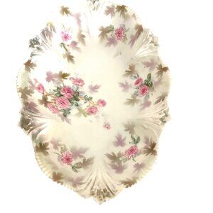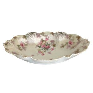 RS Prussia Porcelain Celery Relish Serving Dish Pink Rose Flower Floral Antique