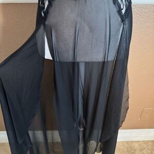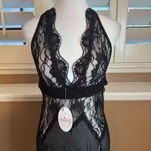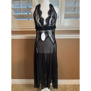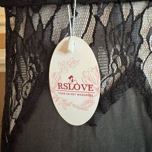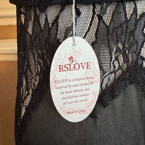RSLOVE S Lace Babydoll Night Dress Black Sheer Mesh Lingerie High Slit Bows New