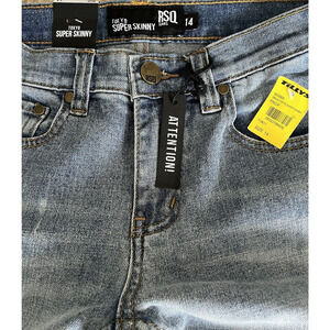 RSQ Boys Tokyo Super Skinny Jeans Medium Wash Blue Whiskered Size 14 New