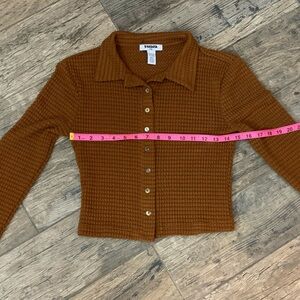 Stylish RSQ button down shirt. Features a textured design. Long sleeves with a classic collar.