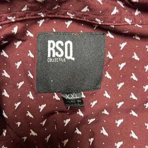 RSQ Collective Burgundy Button Down Shirt with Birds Print Size XXL