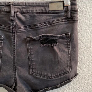 Waist Size 28” Size 5 Distressed black mid rise jean shorts with 5 pockets. Super comfy, stretchy, and fitted. Approx rise: 9". Approx inseam: 2". In Really Good Condition