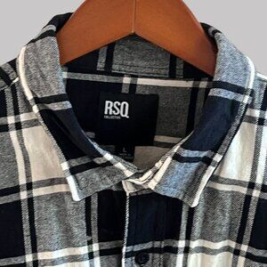 RSQ Flannel Shirt Men's L Black White Check Button Up Casual Outdoors Work