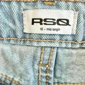 Good condition! RSQ Mid Length Shorts. Zip fly and button closure. Belt loop waist. High rise. Distressing throughout. Raw edge hem. Traditional five pocket styling. Light wash.