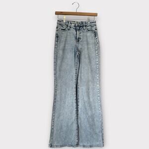 Step back in time with these fun and flirty 90's style RSQ High Rise Flare Jeans! The acid wash light blue denim gives off a trendy, vintage vibe. Perfect for adding a touch of retro flair to any outfit.