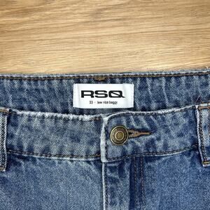 RSQ Jeans Womens 33 US 12 Jeans Low Rise Wide Leg Medium Wash Y2K Distressed
