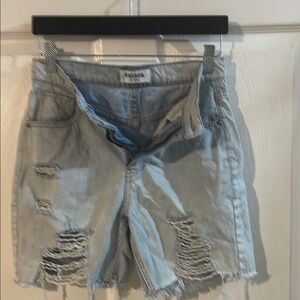 Stylish denim shorts with a distressed look. Ideal for casual outings.