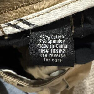 Materials: 97% cotton, 3% spandex for comfortable stretch (per tag).