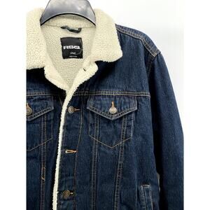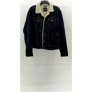 RSQ Men's Dark Blue Denim Button-Up Long Sleeve Sherpa Lined Jean Jacket SZ S