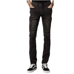 RSQ Moto Jeans Mens 34x32 Black Seattle Skinny Tapered Zipper Accent Stretch NEW. Measurements in photos. Fast shipping!