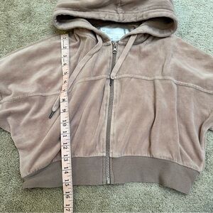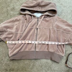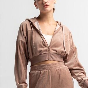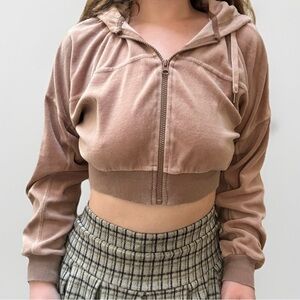 RSQ Recycled Neutral Brown Tan Velour Crop Full Zip Up Hoodie