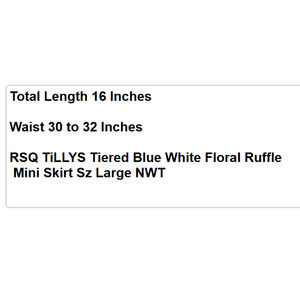 RSQ TiLLYS Tiered Blue White Floral Ruffle Mini Skirt Sz Large NWT