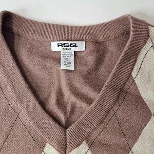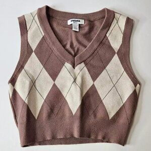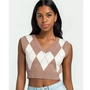 RSQ Tilly's Viscose Sleeveless V-Neck Argyle Preppy Sweater Vest Brown Junior M