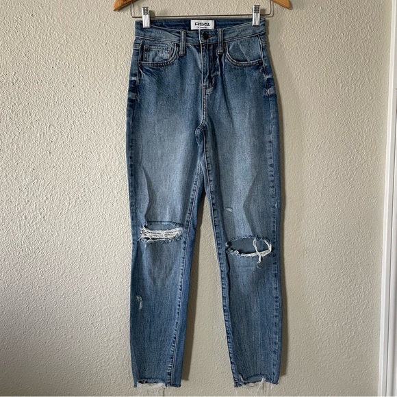 RSQ Vintage Mom Jeans Women’s 24 Blue Medium Wash Ripped Distressed Stretch