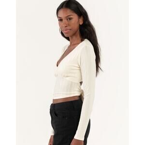 RSQ Womens Top Sz L Cream Open Tie Back Cropped Top Crop Ribbed Long Sleeve