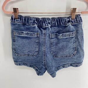RSQ acid wash blue elastic waist mini jean short womens xs