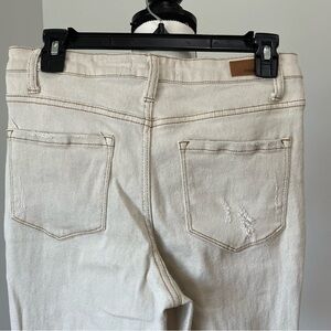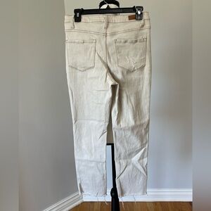 a size 28 nice natural neutral color pair of jeans with frayed hem
