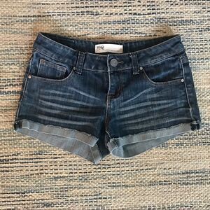 Mid-rise, extremely soft cut offs. EUC No stains or tears. Poly/spandex blend L: 9” Inseam: 3” Rise: 8” Waist: 15”