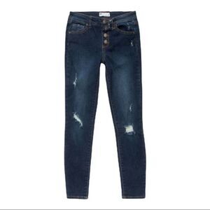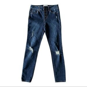 RSQ Mid Rise Skinny Exposed Button Ripped Dark Wash Jeans Size 10