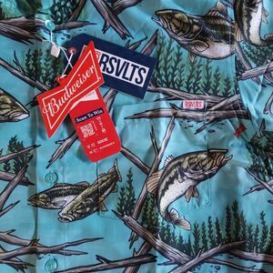 This is for a Brand New Rare RSVLTS Budweiser Shirt Men's Size Medium Fishing Bass All Over Kunuflex - NWT - Short Sleeve - Button Down