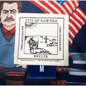 RSVLTS Parks and Recreation Shirt Men's Medium Blue Ron Swanson Pawnee Button