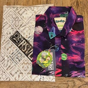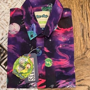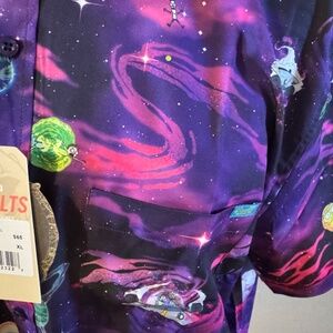 RSVLTS Shirt Mens XL Rick And Morty Space Galaxy Cosmos Purple Button Up