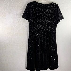 RSVP BY TALBOTS Black Velvet fit &Flare w/sewn on sequins. Flutter sleeves