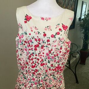RSVP By Talbots White Cream Sleeveless Floral Tea Party Cotton Midi Dress 12