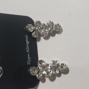 Turn heads with these dazzling RSVP silver-tone drop earrings featuring a cascading cluster of sparkling clear crystals. Designed to catch the light beautifully, these hypoallergenic earrings are ideal for special occasions, parties, or elegant everyday wear. Lightweight and comfortable with a secure post-back closure.