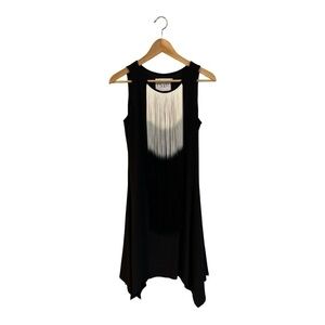 RSVP Fringe Neck Asymmetric Dress Size 6 Black White