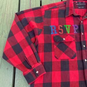 RSVP Gallery x Ales Grey Crystal Bejeweled Button Up Shirt Top sz L Large Men's