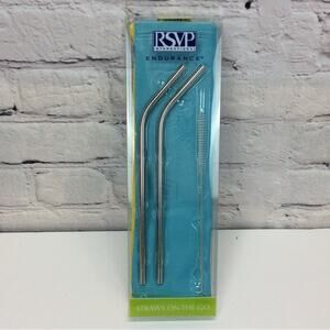 RSVP International Set of 2 Stainless Straws w/Cleaning Brush & Carrying Pouch