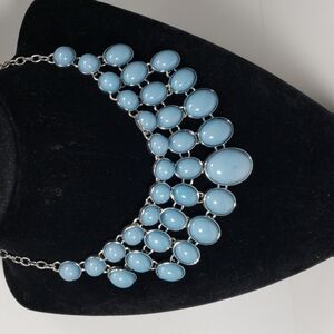 Make a striking impression with the RSVP silver-tone layered statement necklace, featuring blue-grayish color stones. With an 18+4 inch adjustable chain, this bold and elegant piece is designed for women who love to showcase their unique style with sophisticated, statement-making jewelry. NWT