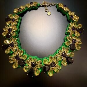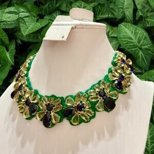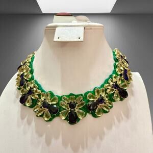 This is a stunning floral statement necklace with vibrant green and blue stones by RSVP Talbots. It originally retailed for $89.50 and is excellent preloved condition.