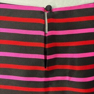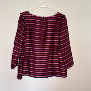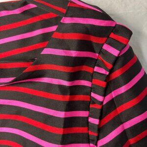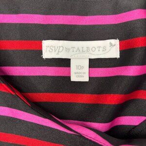 RSVP by TALBOTS 10 Petite Striped Silky Top Ruffle Keyhole Black Red Pink