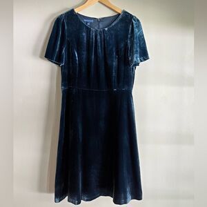 RSVP by Talbots Navy Blue Velvet Short Sleeve Dress Women’s 10 Party Holiday