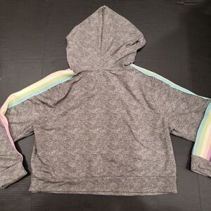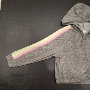 R.Sofia Grey Hoodie Cropped with Rainbow Stripes on the arms. NWOT, bought this bit didn't realize it was cropped and just never returned it, the tags were taken off and then its been a drawer ever since