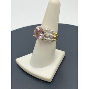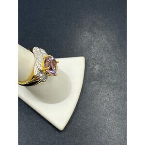 RT 925 Sterling Silver Vermeil Rose de France Amethyst Diamond Ring Size 7.5