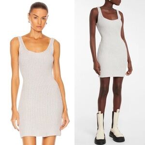 RTA 90s Grey Cotton Knit Sleeveless Scoop Neck Shift Mini Sweater Slip Dress L