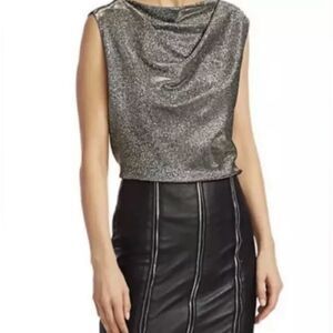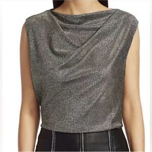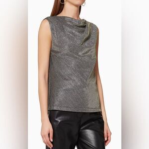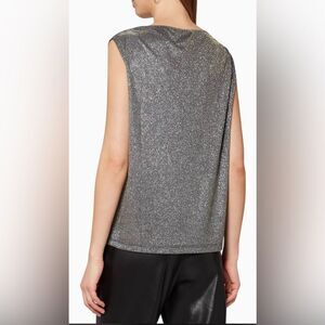 Shimmer in style with this elegant silver sleeveless top. Perfect for any occasion. New, no tags