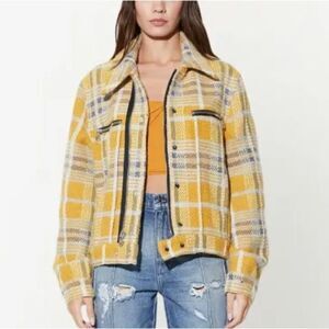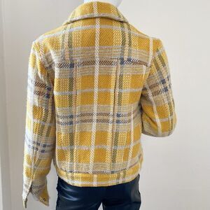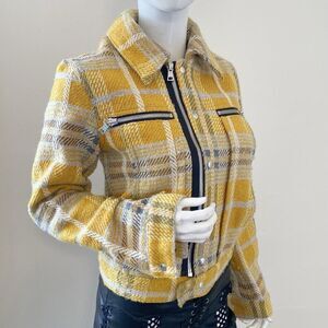 RTA Ivana Yellow Plaid Check Moto Jacket Yellow Plaid Jacket w Zipper Details