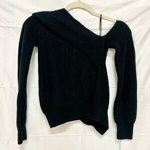 RTA Juliet Off-the-Shoulder Asymmetrical Ribbed Knit Sweater Black Women's XS