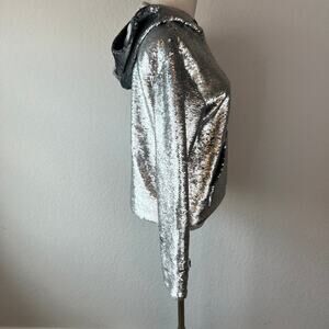 RTA Sequin Hoodie Jacket Silk Lined Kanagroo Pocket size XS Silver