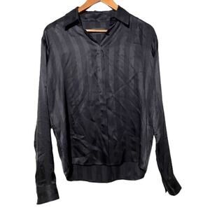 RTA Shirt Women's XS Brady Shirt Sultry Stripes Sophiscated Simple Black Silk