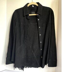 RTA Suede Shirt Jacket Womens Small Black Fringed Leather Snap Front Slim