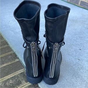 RTA Women's black combat boots. US size 11. In very good preowned condition. Very minor wear. There is a scuff mark on top of left shoe. And a small indentation on toe of right shoe. 100% leather with attached leather sock. RTA logo. Rubber sole. Silver zipper down the back. Made in Italy. Comes from a smoke free home.