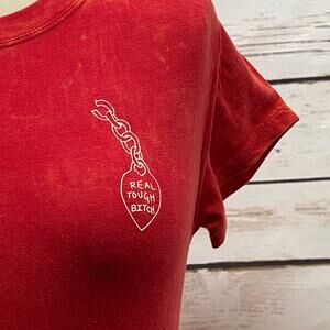 RTB Real Tough B itch Red Acid Wash Graphic Logo Tee Shirt Woman's Size Medium M