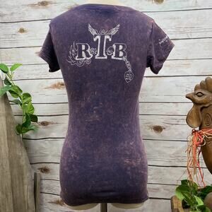 RTB Real Tough Babe Acid Wash Graphic Biker Babe Tee Shirt Woman's Size L #077
