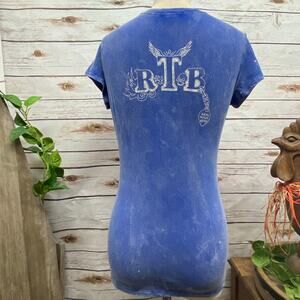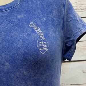 RTB Real Tough Babe Blue Acid Wash Biker Babe Tee Shirt Woman's Size L #283