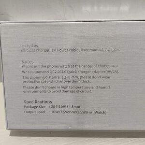 Includes: Wireless Charger 1M Power Cable User Manual Adapter
